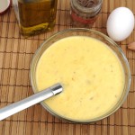 2. Tillsätt ägget och mjölken och rör till en slät smet.